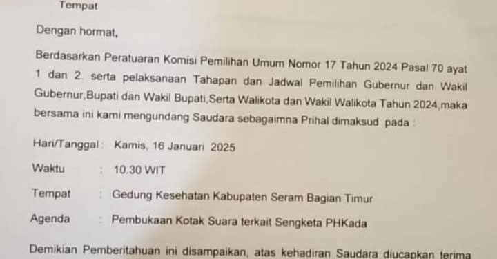Saidobonews.com, Bula-Surat KPUD mengenai pemberitahuan buka kotak suara yang viral di sosial media, ternyata belum pernah diterima Polres Seram Bagian Timur (SBT).